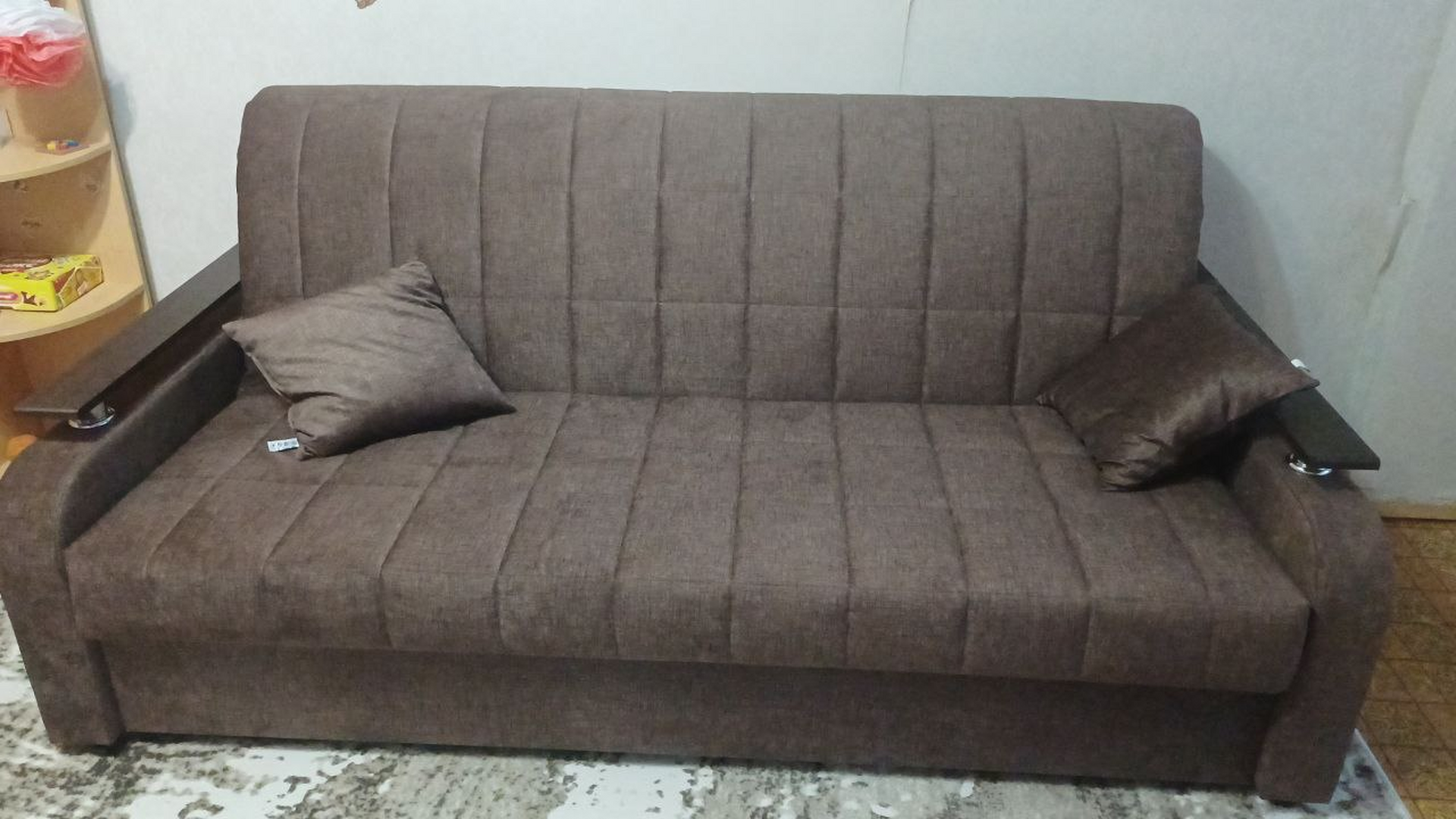 Компактный качественный диван , цвет бежевый очень красивый , гладенькая ткань , доставка и сборка оперативная, ребята молодцы 👍