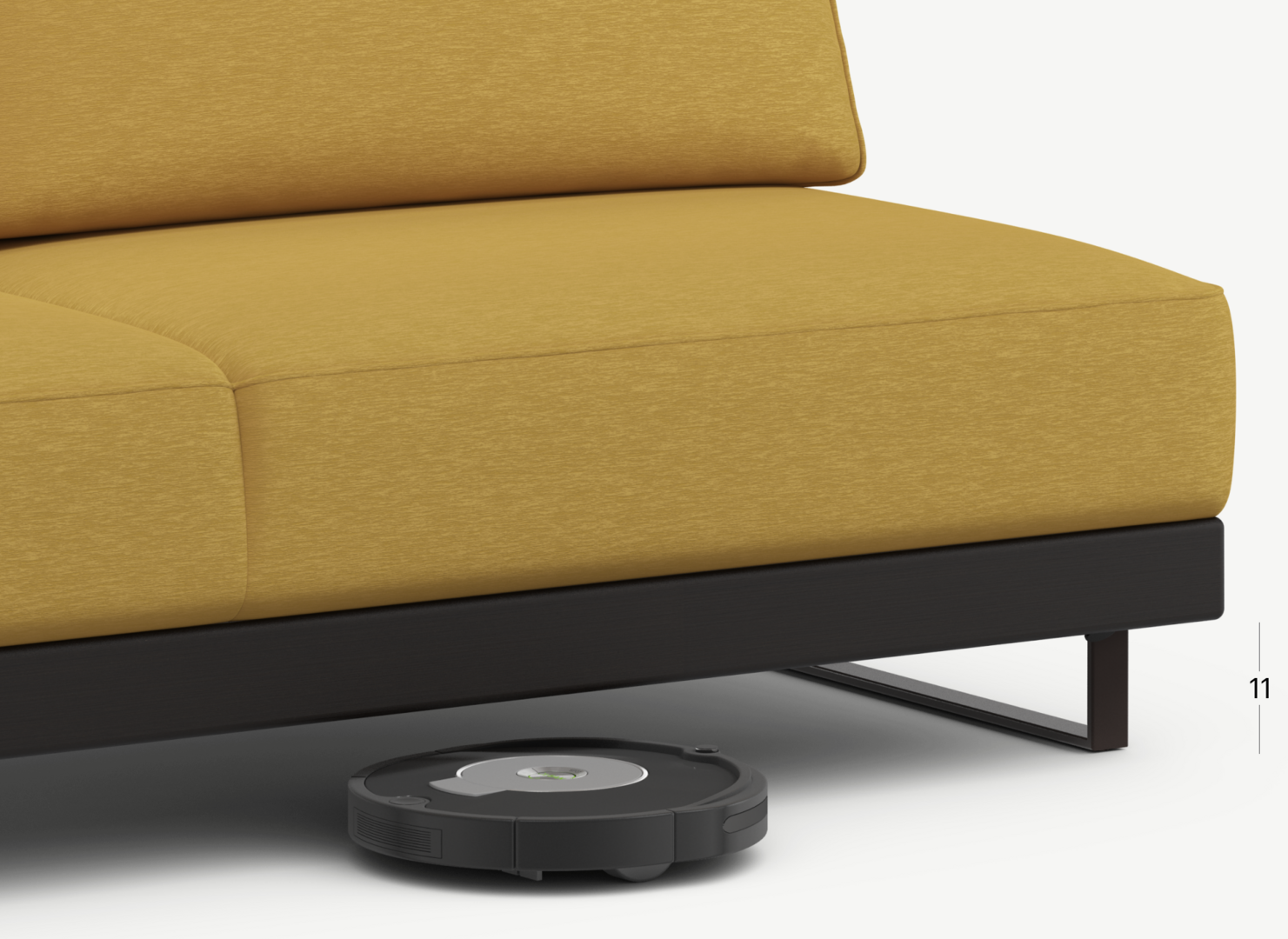 Благодаря высоким прямоугольным опорам под диваном проходит робот-пылесос и легко проводится влажная уборка, что обеспечивает чистоту и порядок в доме.