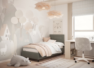 Фактура обивочного материала подбирается дизайнерами с учетом технологических и стилевых особенностей кровати.