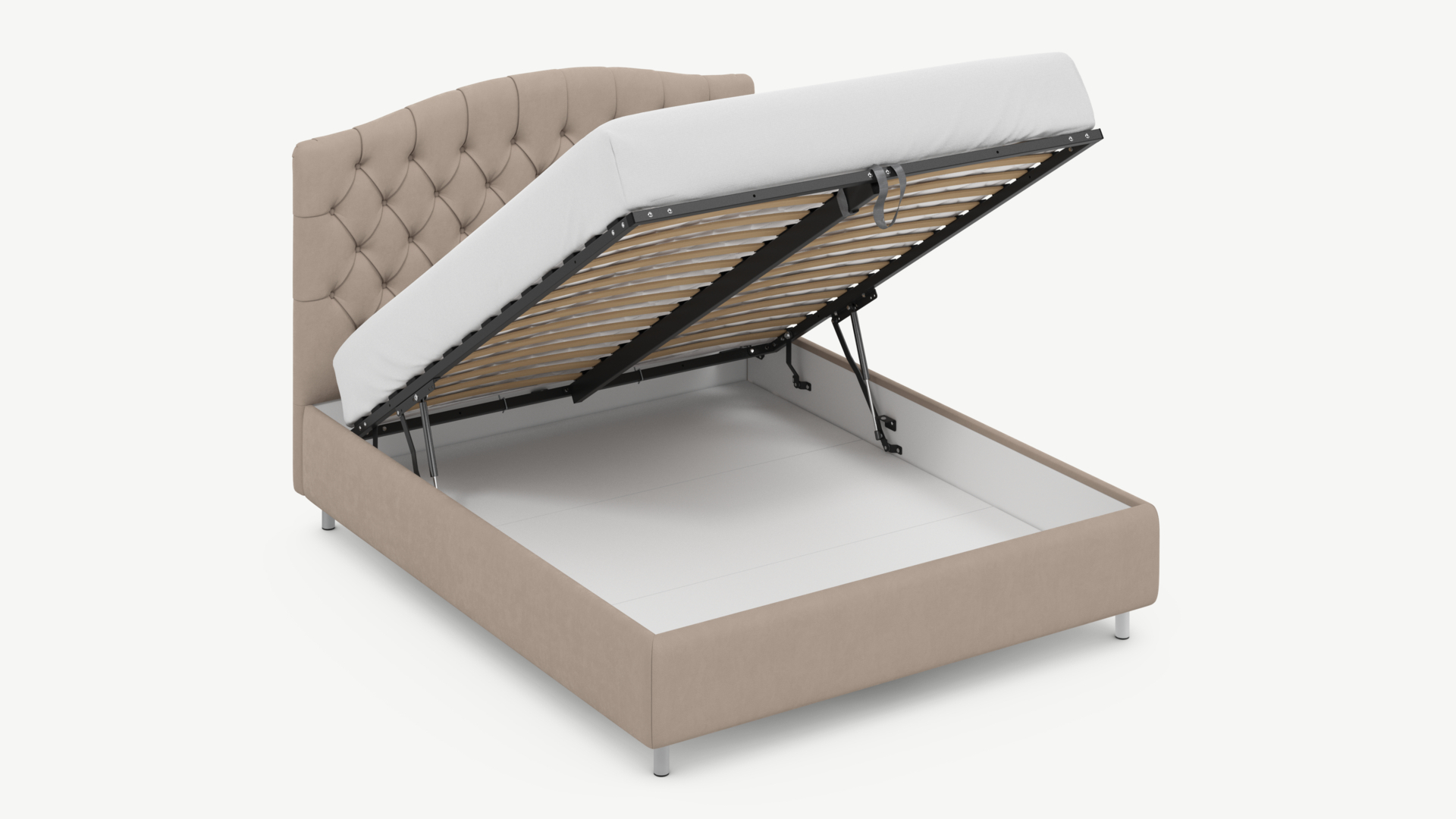 • Скрытая под основанием вместительная емкость без внутренних перегородок позволяет использовать всю площадь подкроватного пространства для хранения вещей.