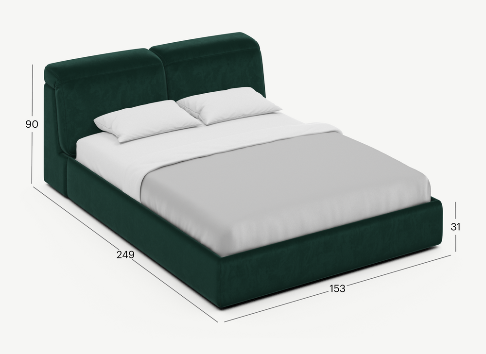 Для оформления кровати наши дизайнеры рекомендуют однотонный велюр, который придает MOON 1107 элегантную утонченность.