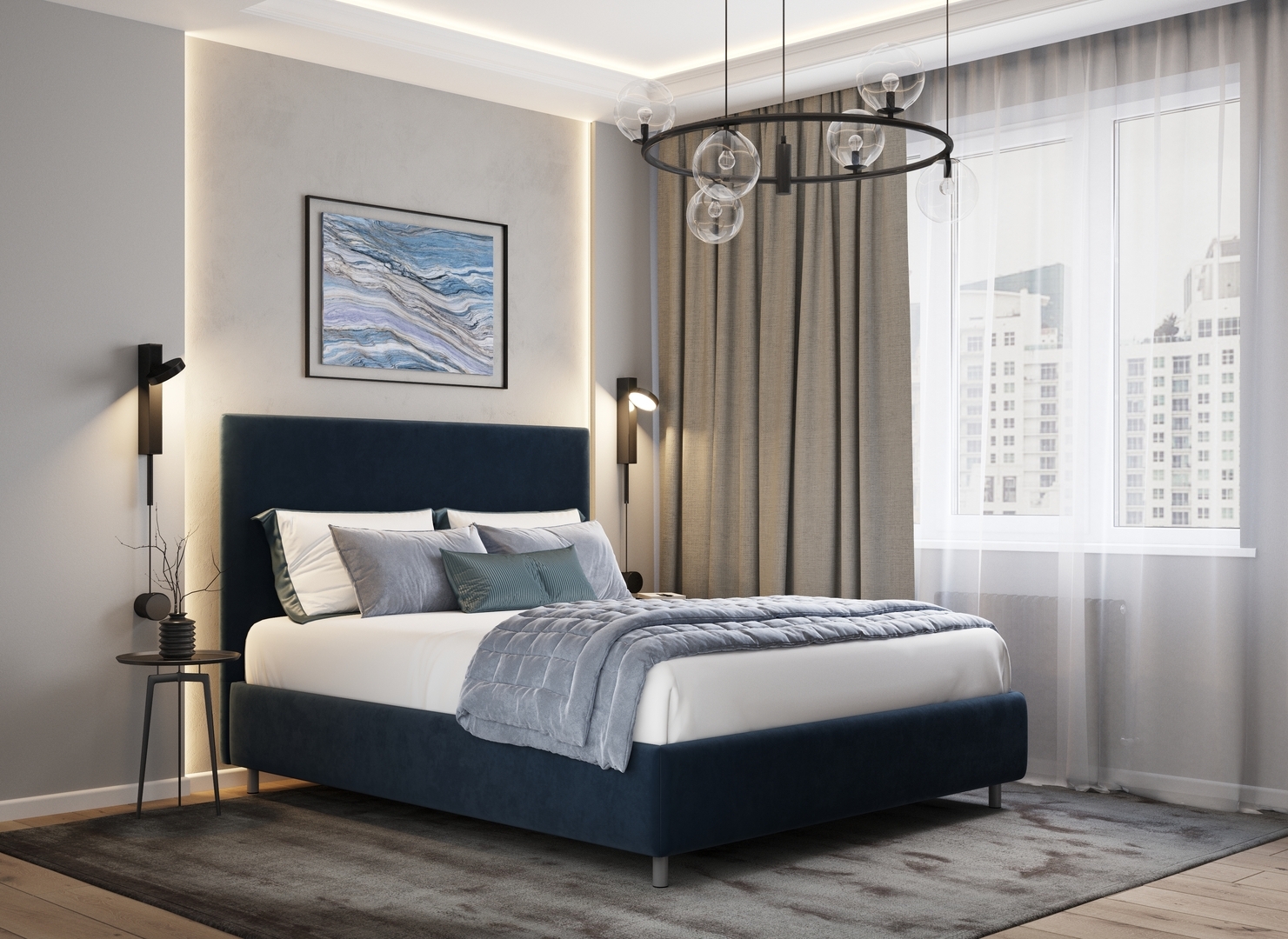 Разнообразие цветовой палитры позволит подобрать желаемый оттенок обивочной ткани. Использование светлых цветов поддержит настроение стиля «Сканди». Приглушенные насыщенные оттенки оформят кровать в стиле «Лофт». Нейтральные оттенки в цвет интерьера обыграют спальню в Современном стиле.